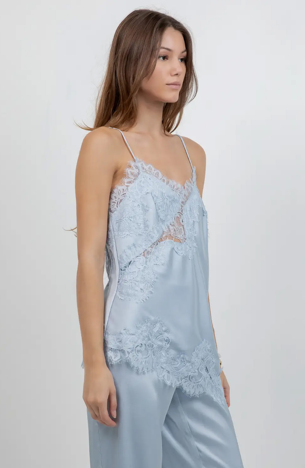 Baby blue lace cami with adjutable straps.