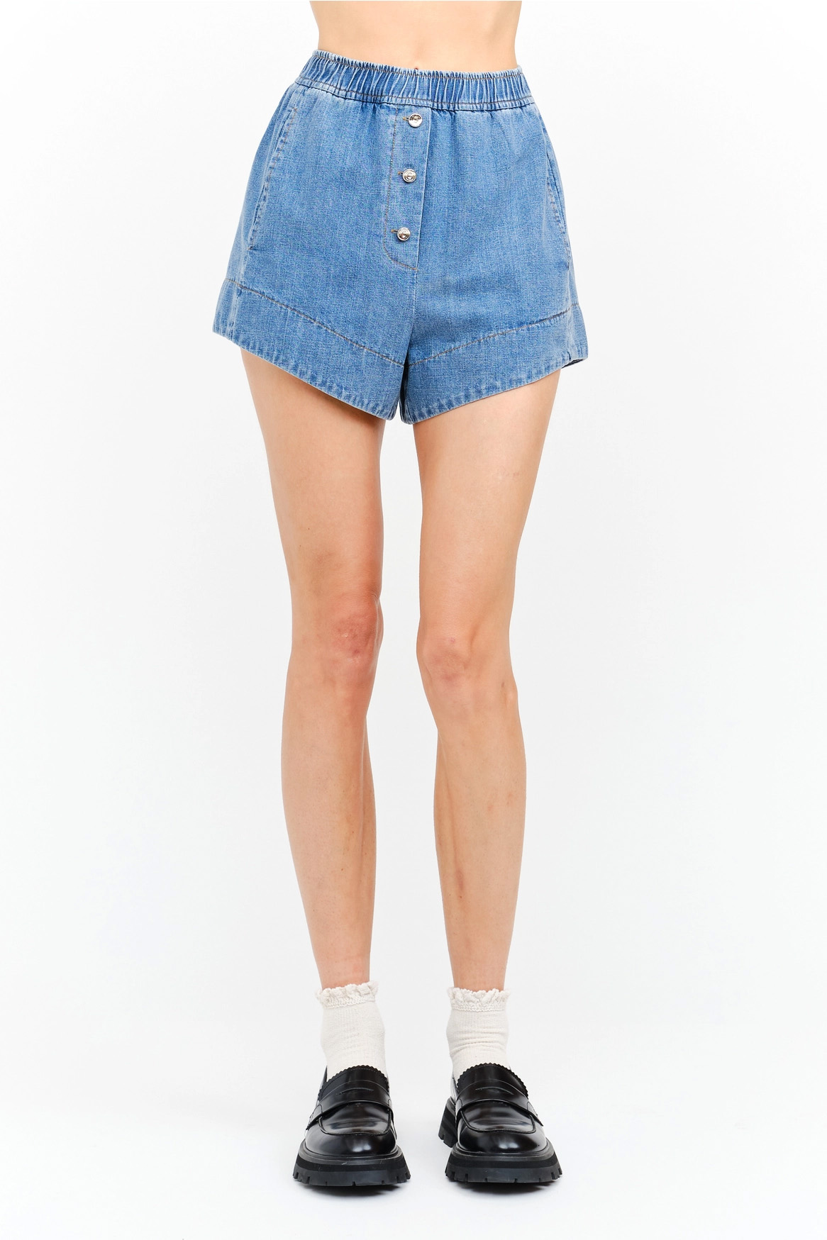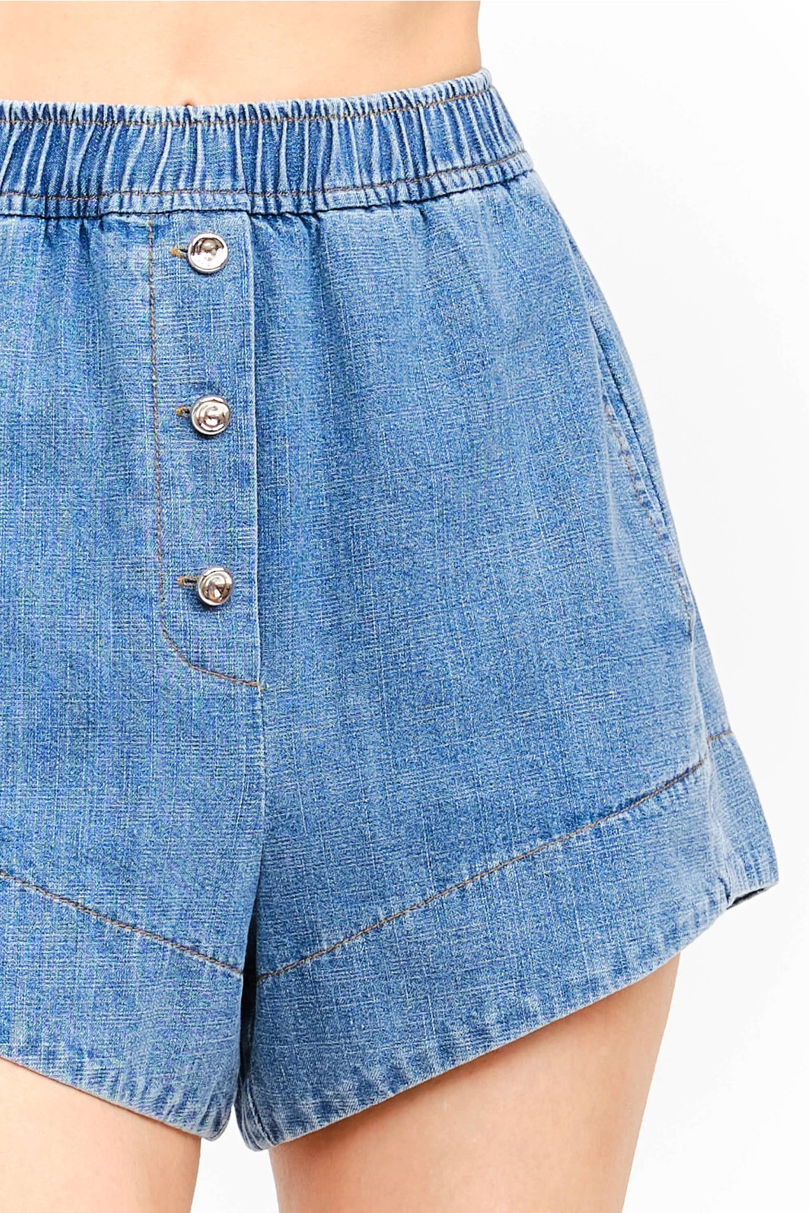 Soft denim boxer shorts with side pockts and elastic band.