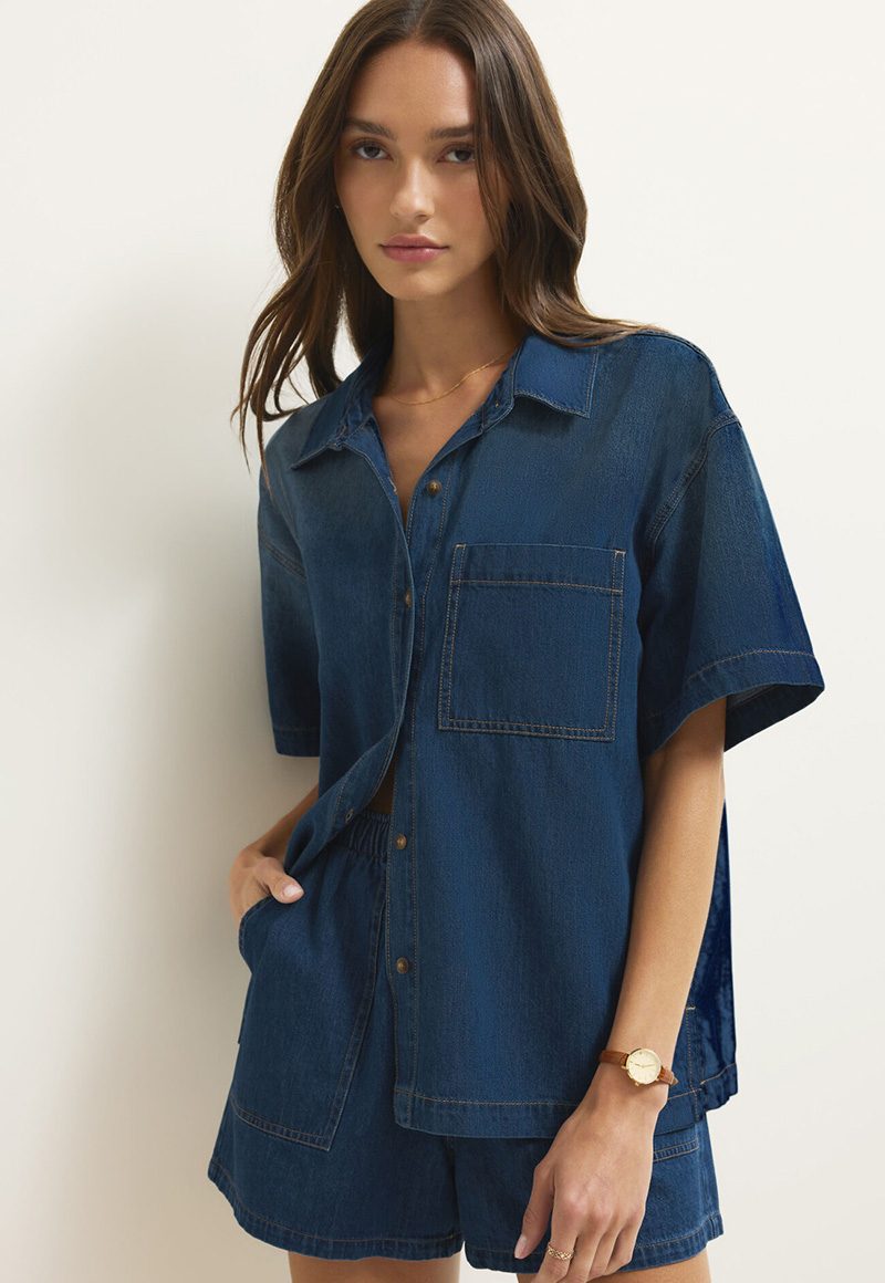 Heavy soft-wash denim shirt.