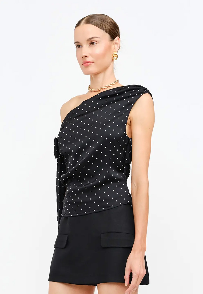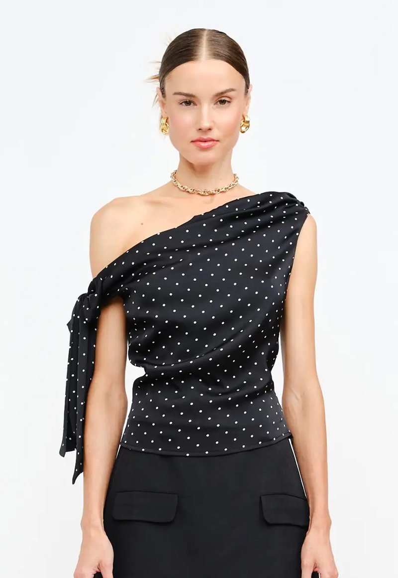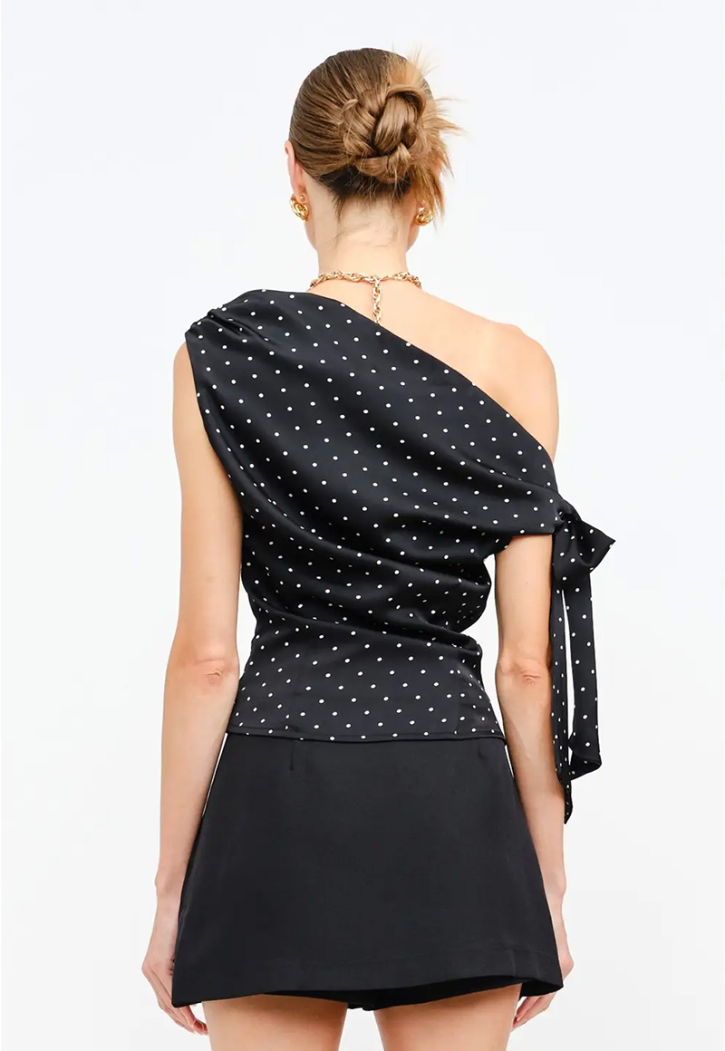 Satin polka dot asymmetrical top.