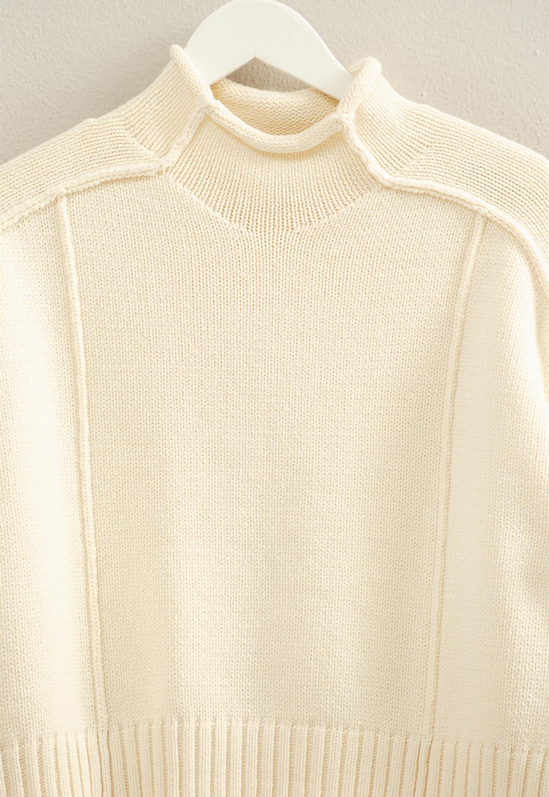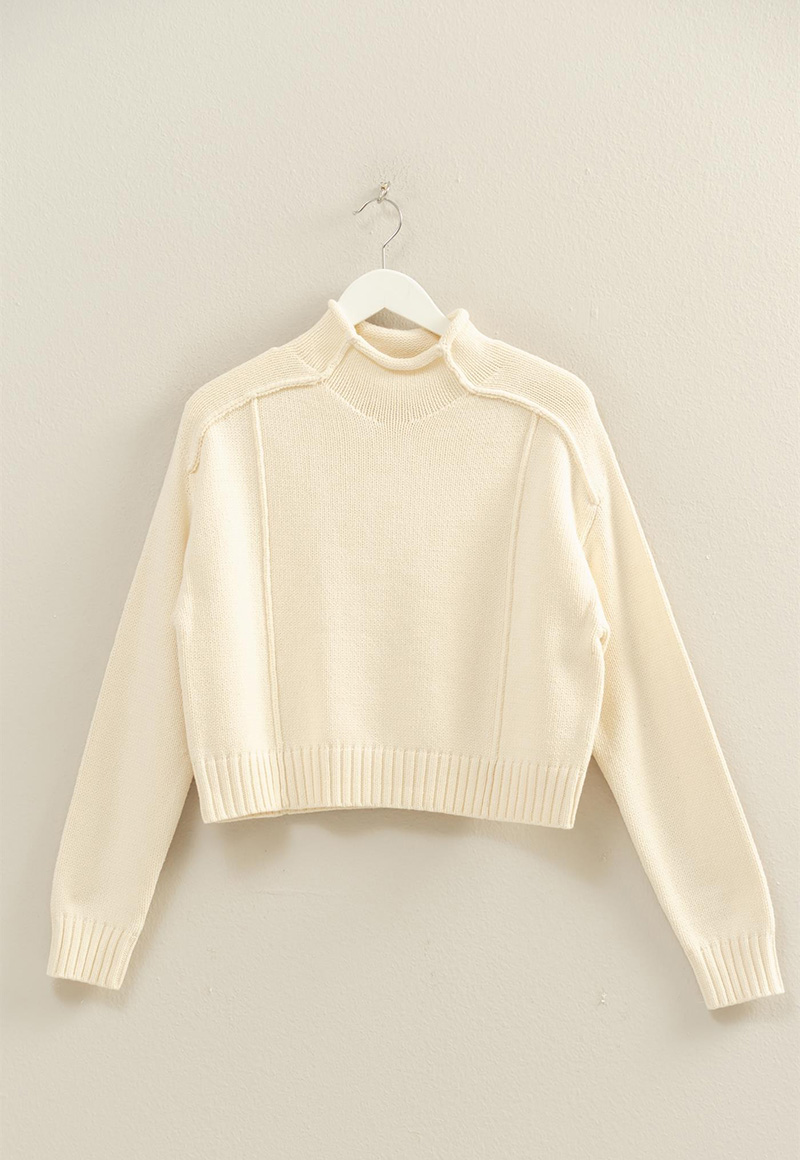 Cream expose seam moch neck sweater.