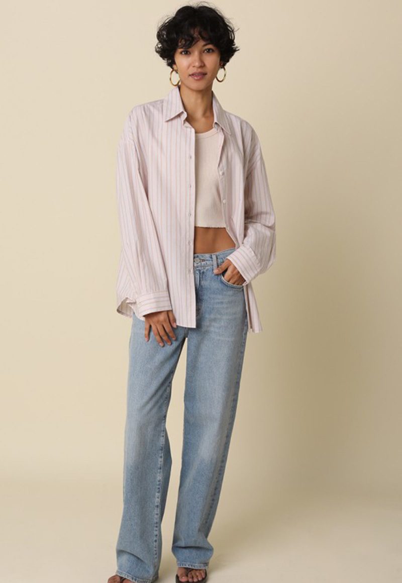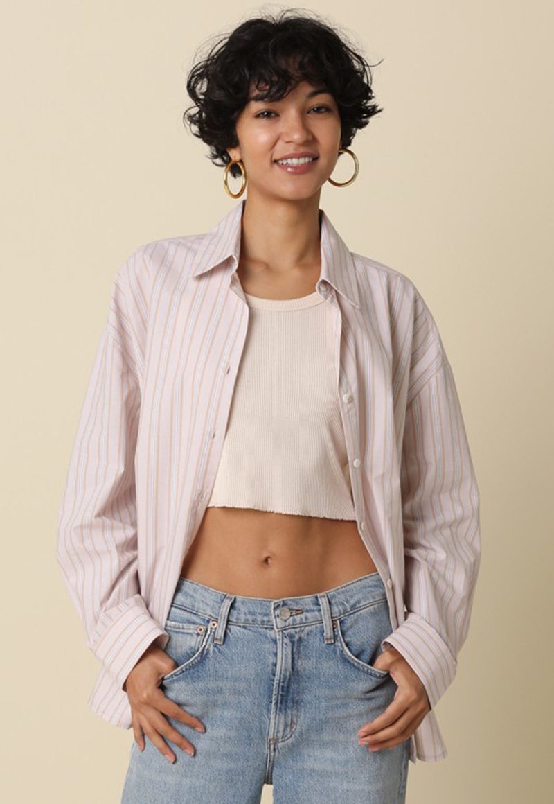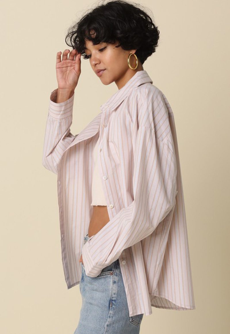 Light tan stripe button-down top.