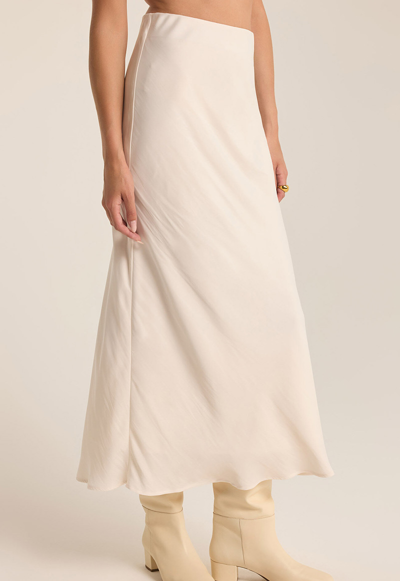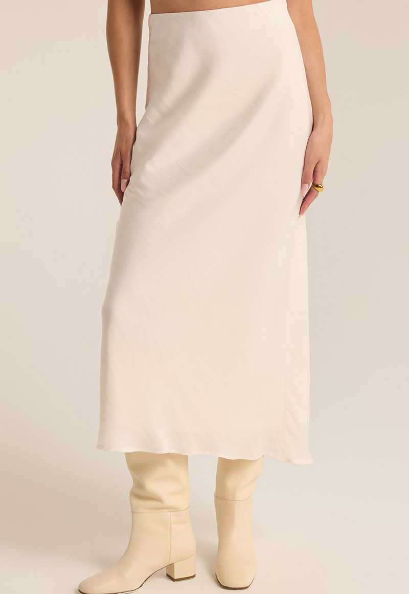 Winter white silky skirt with an elastic band. Lined.