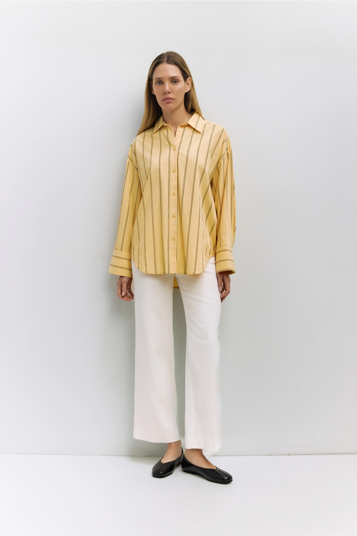 Pale yellow stripe top.
